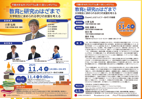詳 細:https://alc.chiba-u.jp/ALPS/seminar/symposium/sympo11_2025.html
